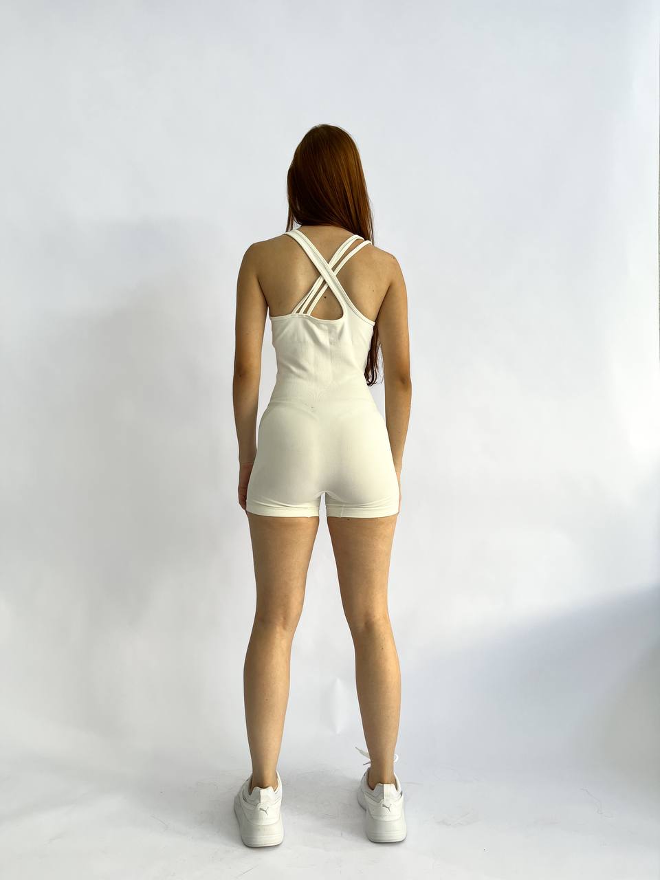 O Macaquinho Quartzo é a definição de minimalismo sofisticado! 🤍 A cor off-white é elegante, e o design com decote em V e tiras cruzadas nas costas faz toda a diferença. Feito para valorizar suas curvas e te dar liberdade total para treinar. É a peça que faltava no seu guarda-roupa fitness.