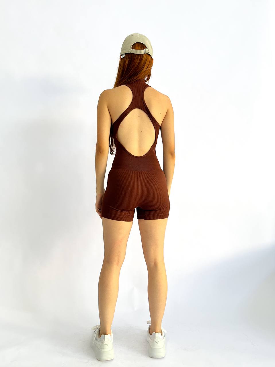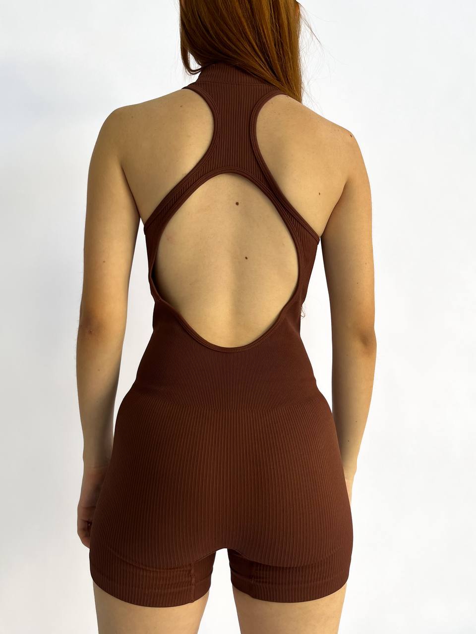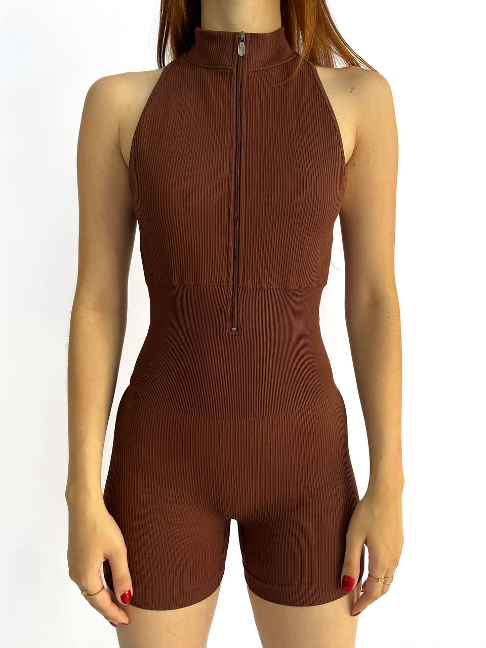 O Macaquinho Âmbar é a peça que une estilo, praticidade e conforto em um só design. Com modelagem ajustada que valoriza a silhueta, ele é confeccionado em tecido canelado de alta elasticidade, garantindo liberdade de movimento e caimento perfeito. O detalhe do zíper frontal permite variações no look, enquanto o decote nadador com recorte nas costas traz modernidade e sofisticação.